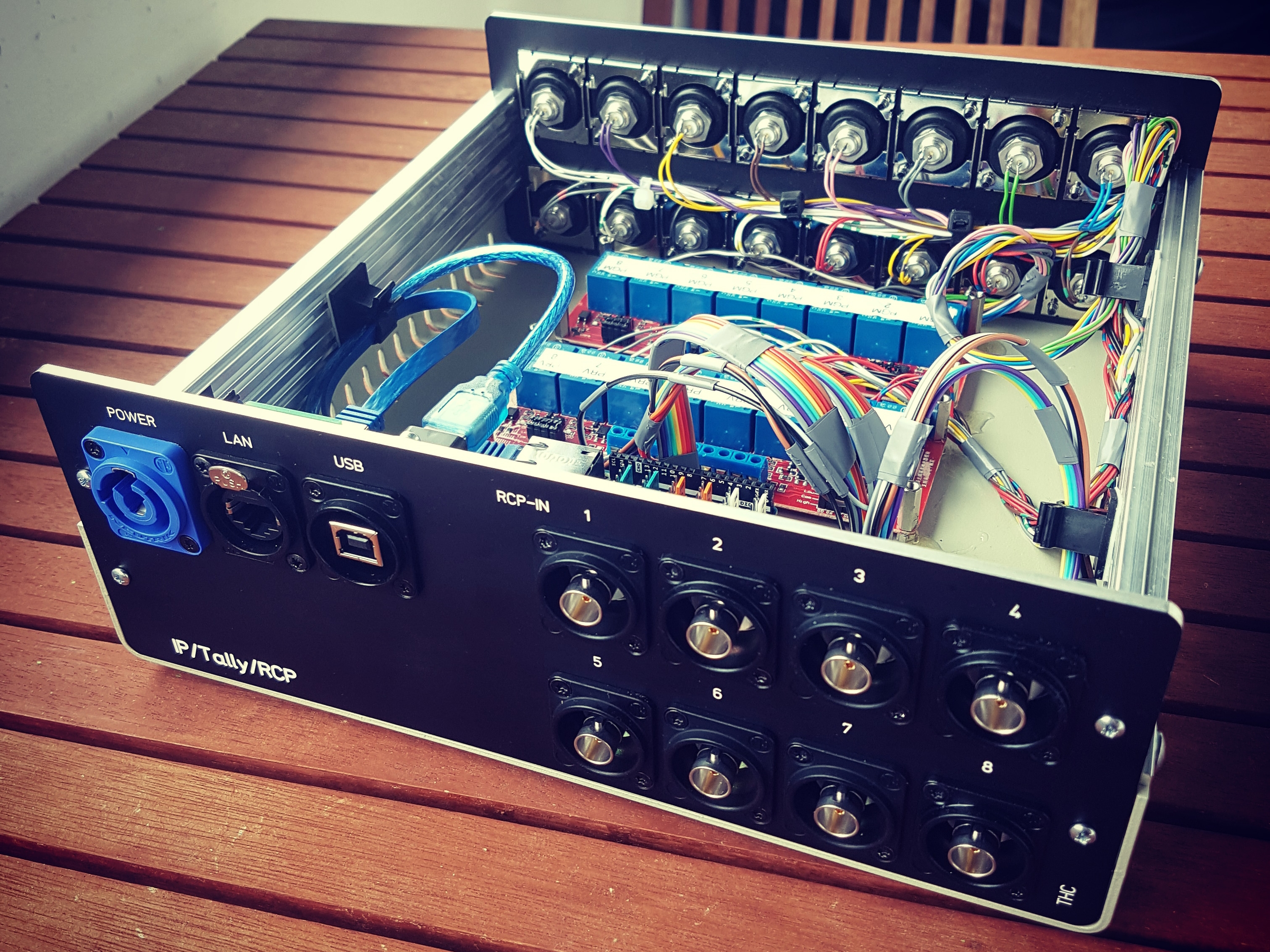 Mit der neuen konstruierten GPIO-Box ist die Ansteuerung der Tally-Signalisierungslampen von Kamerazügen durch Blackmagicdesign „Atem“ und „vMix“ Bildmischersystemen über Netzwerk möglich.