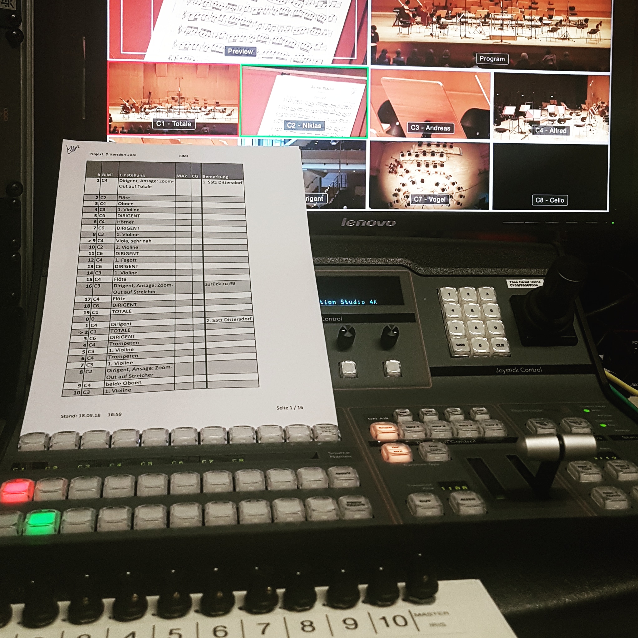 Am 19.9.18 wurde des Eröffnungs- und Antrittskonzert des neuen Chefdirigenten Case Scaglione des Württembergischen Kammerorchesters in der Harmonie Heilbronn mit 8 Kameras aufgezeichnet. Der Live-Bildschnitt erfolge nach musikalischer Vorbereitung.